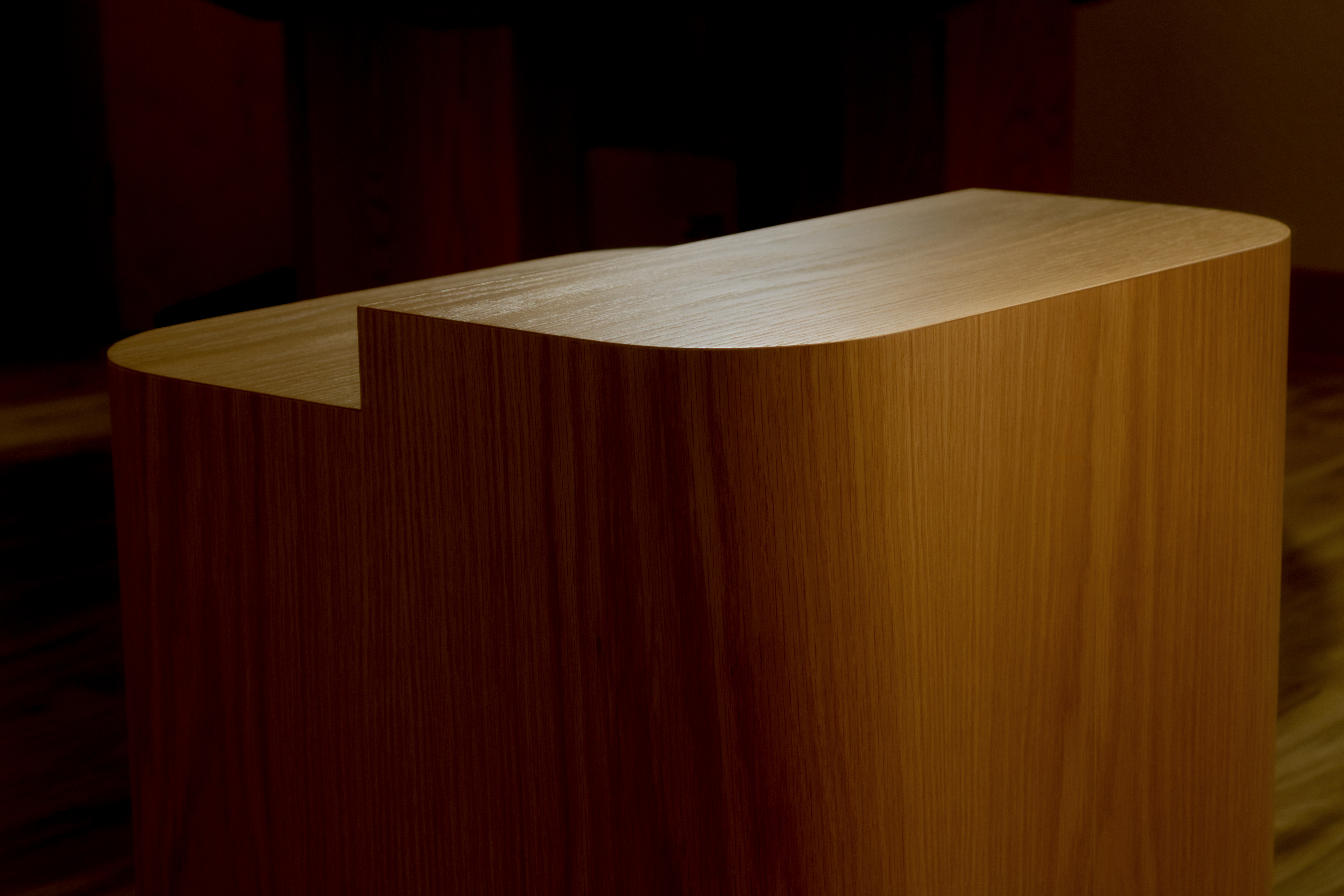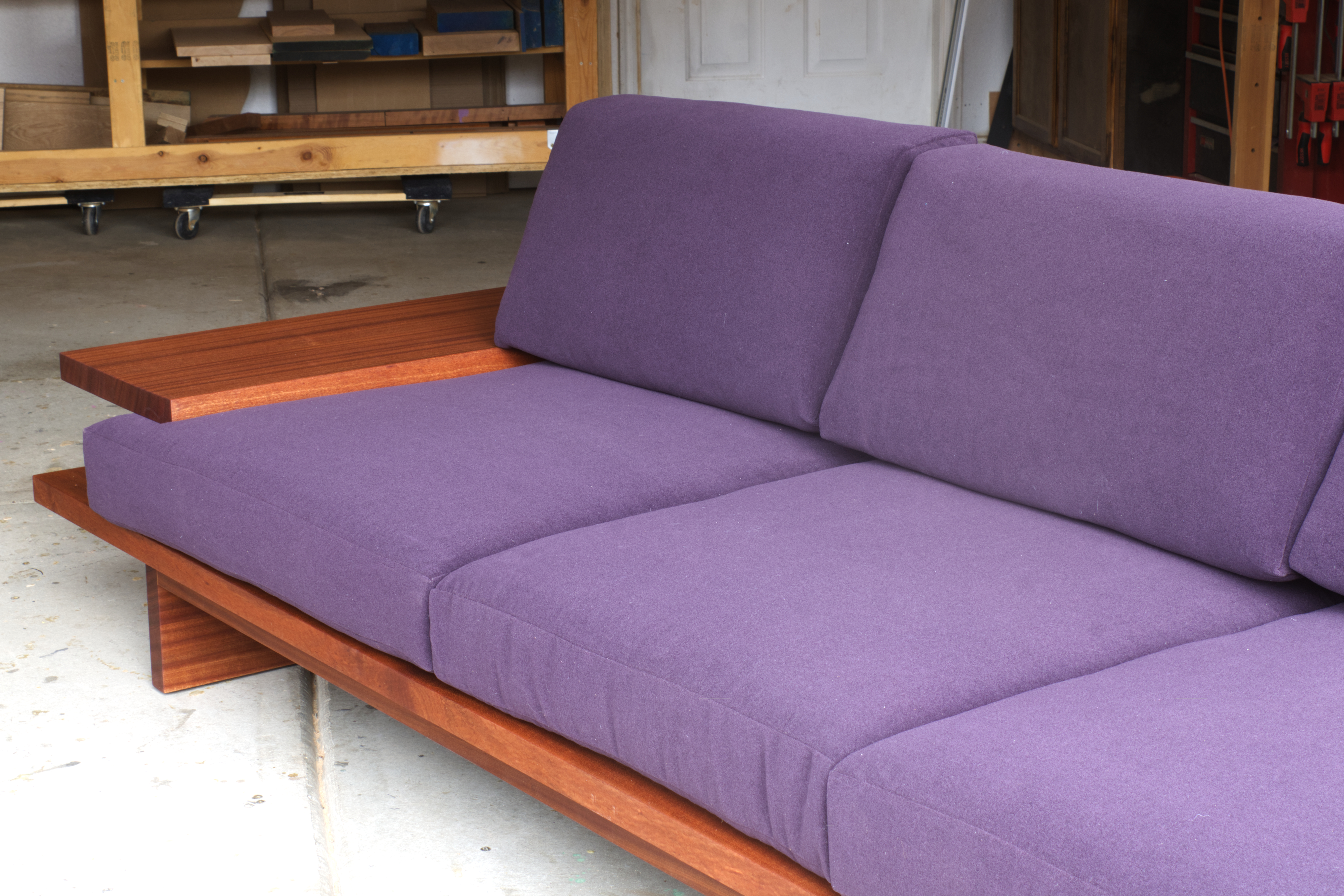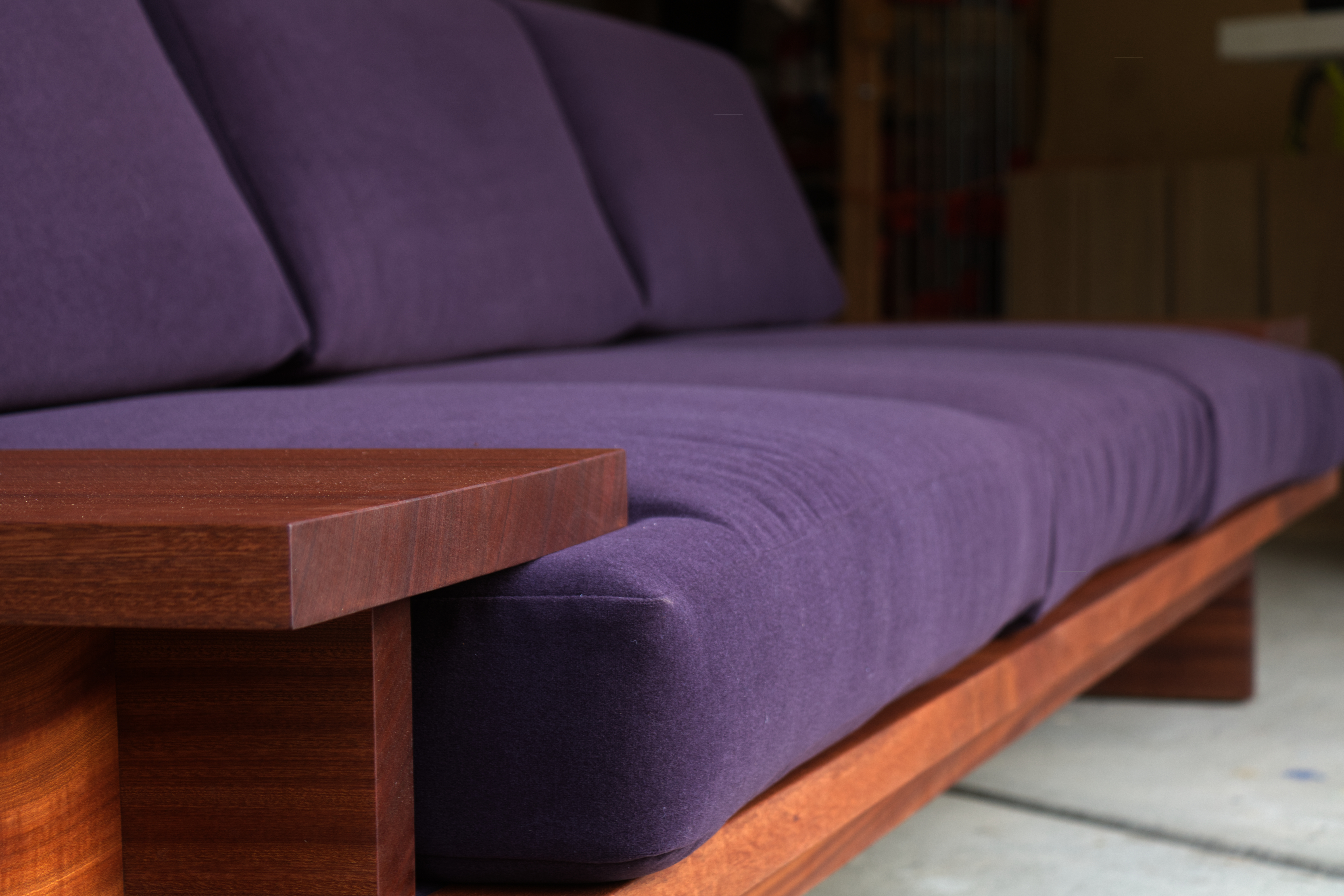 sapele, oil, custom Knoll fabric