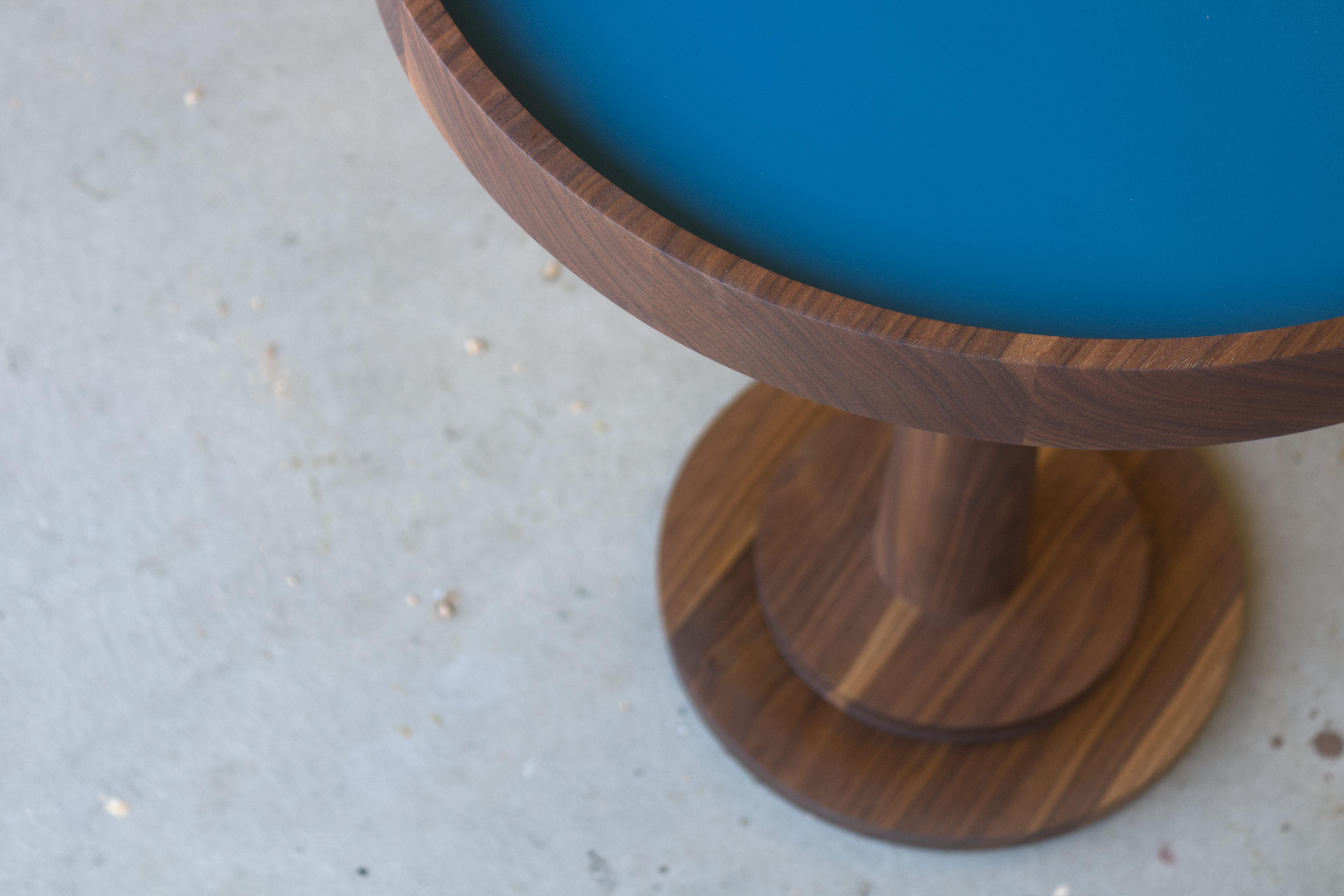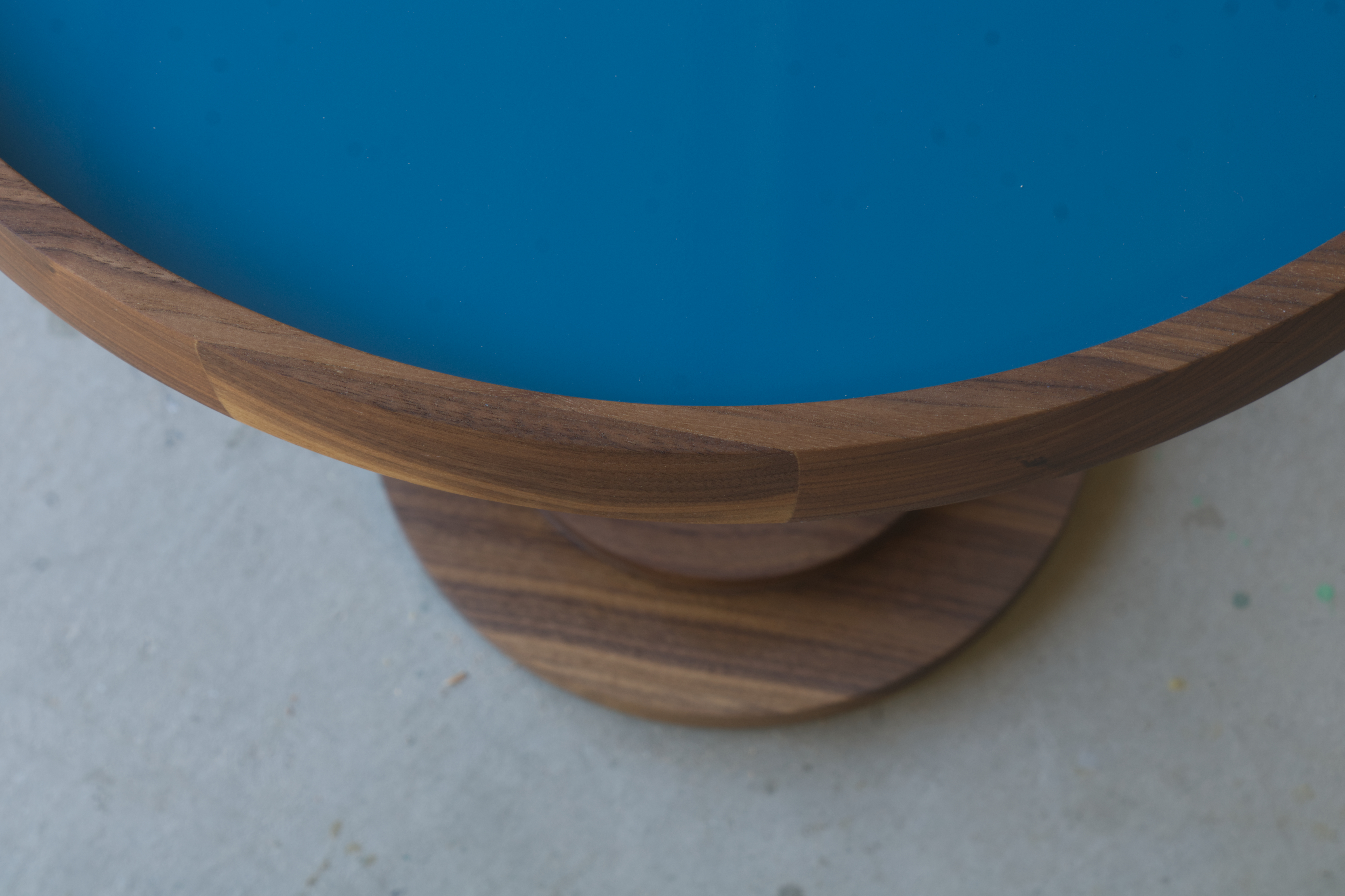 walnut, MDF, oil, polished acrylic finish
