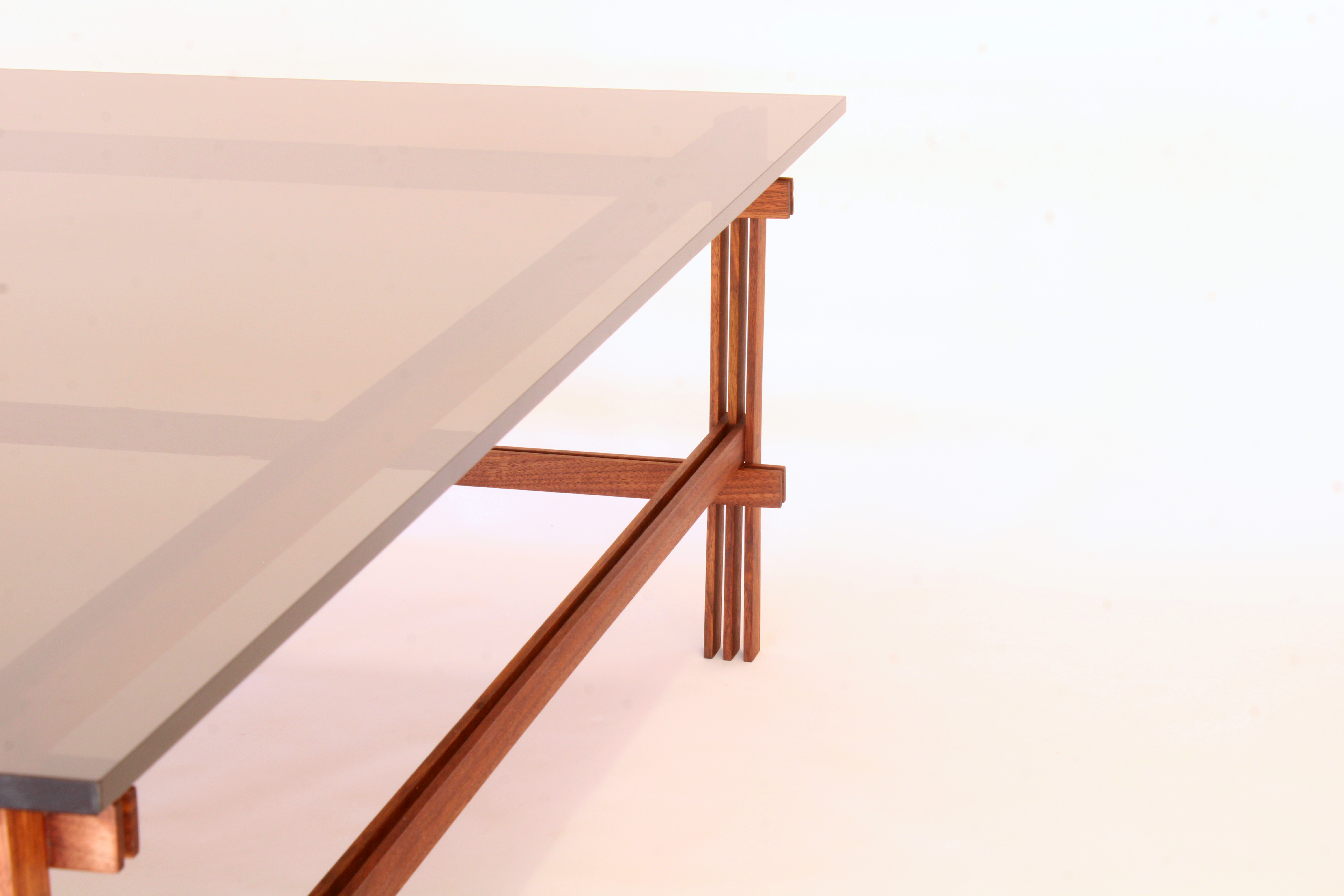 A long time obsession with the trestle table culminates in this piece, a contemporary rendition. We reimagined it with broken down components or “composites” that meet and come together to form legs and supports. Through these pieces, the table’s charm is found in the thin strips of wood, the negative space that divides them, and the intricate joinery where the parts come together. Simple and straight forward from a far, full of intricacy and detail upon closer inspection.