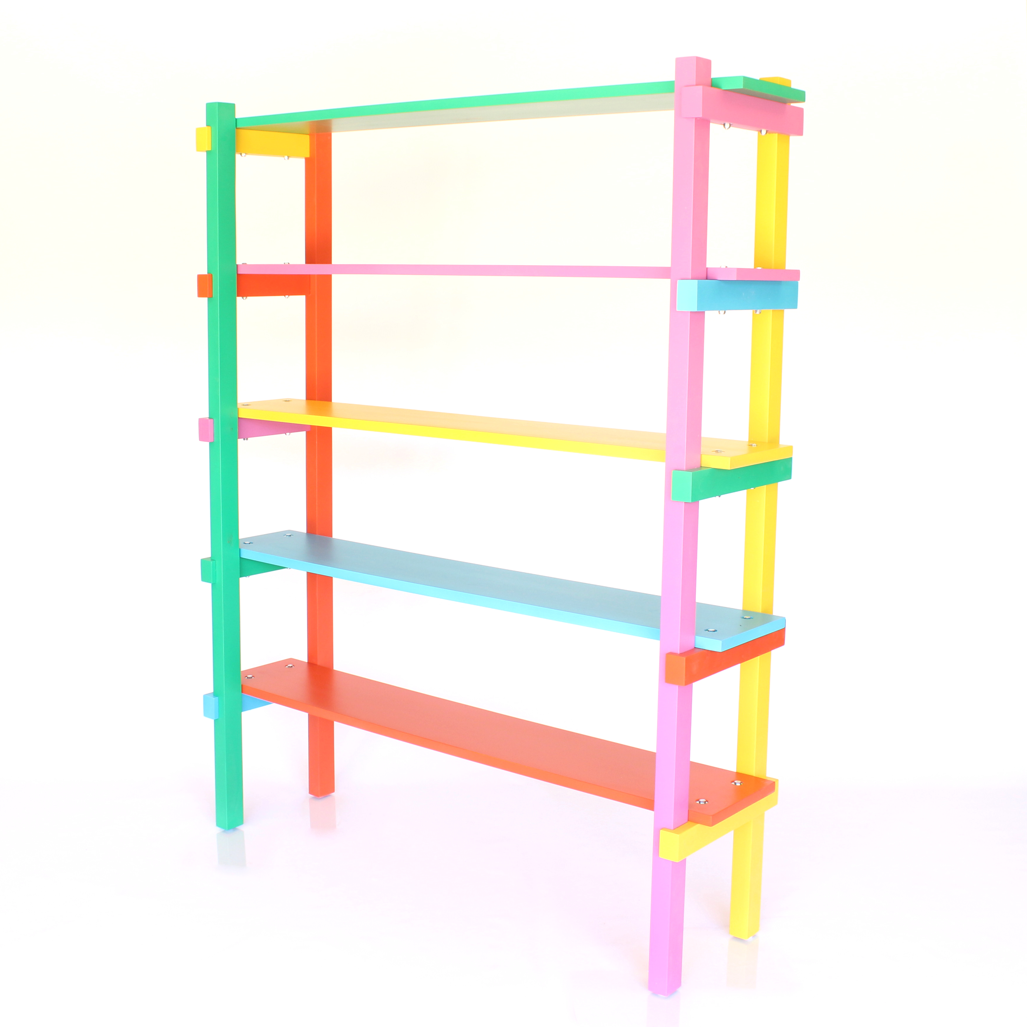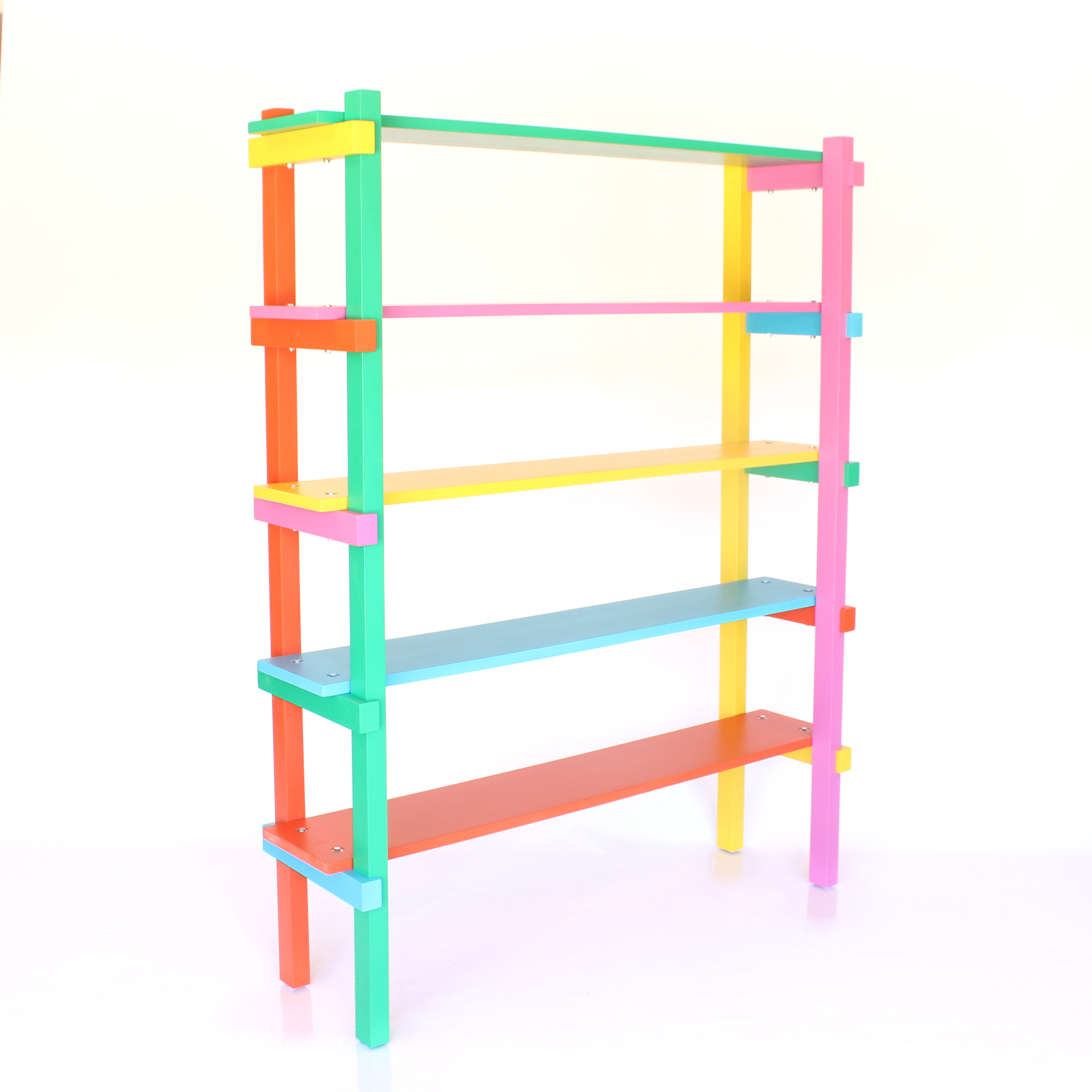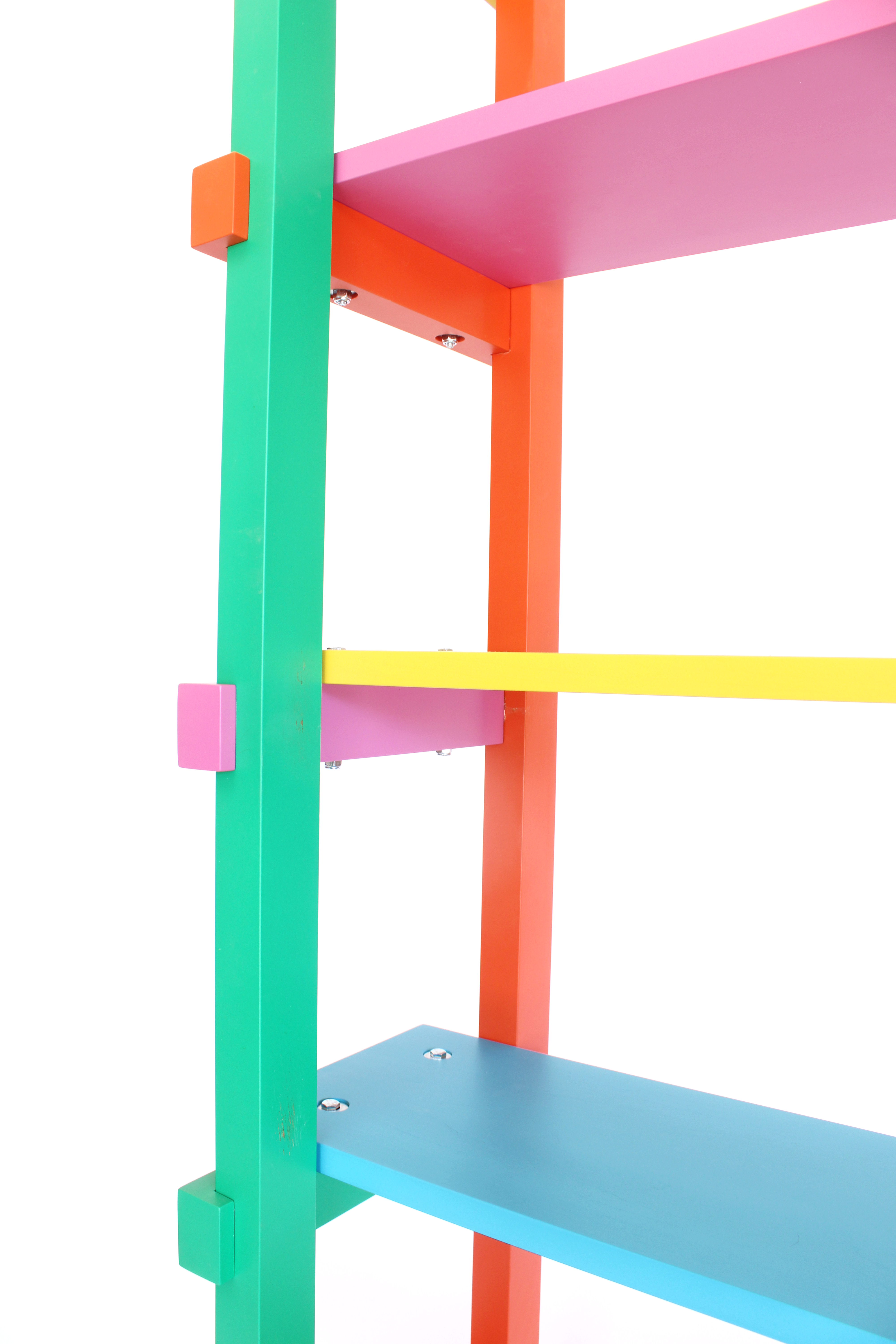 Inspired by the color and playfulness of the “Carlton” shelf by Ettore Sottsass, this shelf takes an alternative attitude toward the form and function than that of the Sottsass shelf. The Flatpack Milano Shelf by Greg Palombo prioritizes function through its form of purely vertical and horizontal planes, and its flatpack nature. Visually the piece is playful, reminiscent of legos in its construction, blocky form and its color.