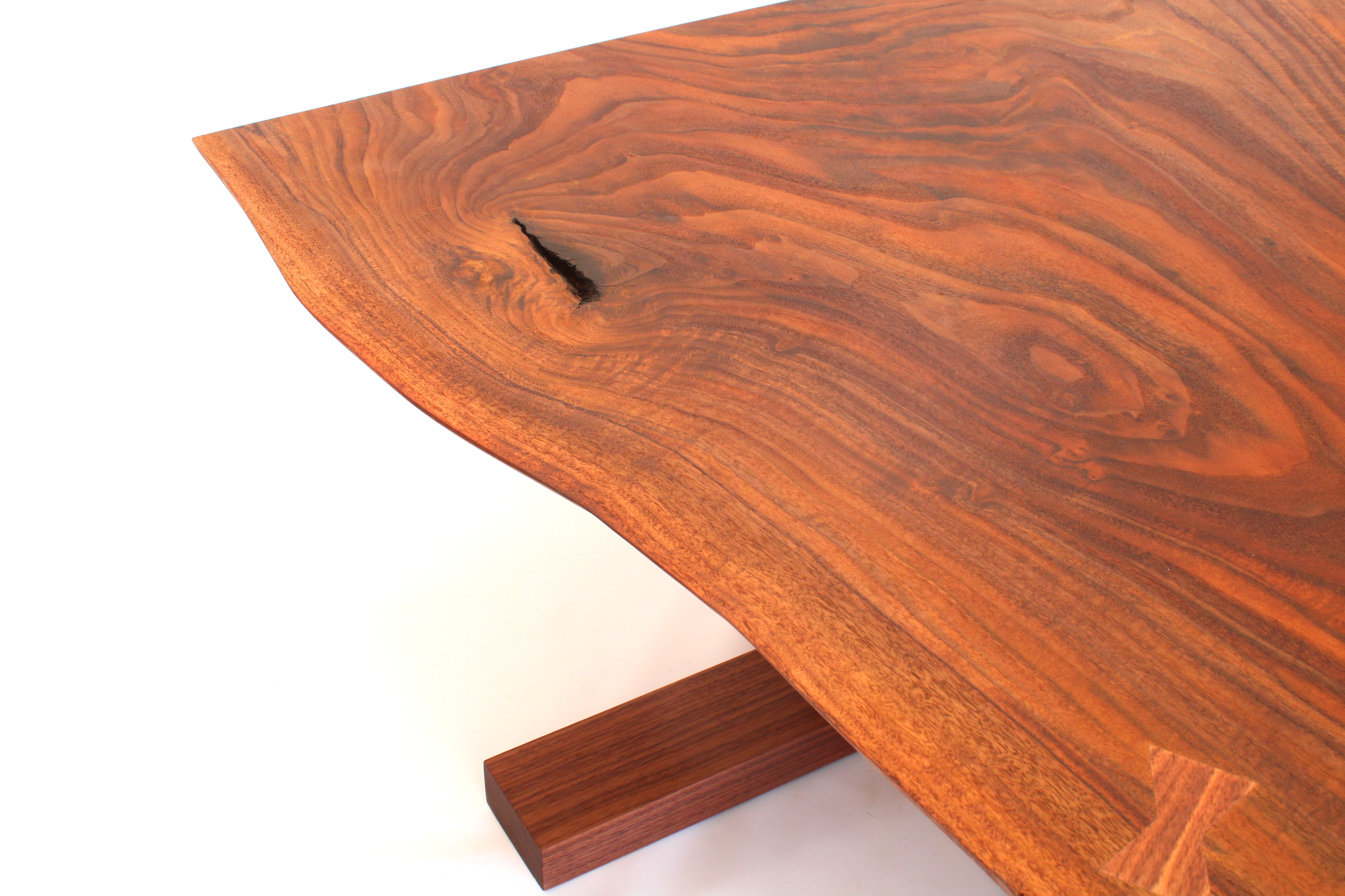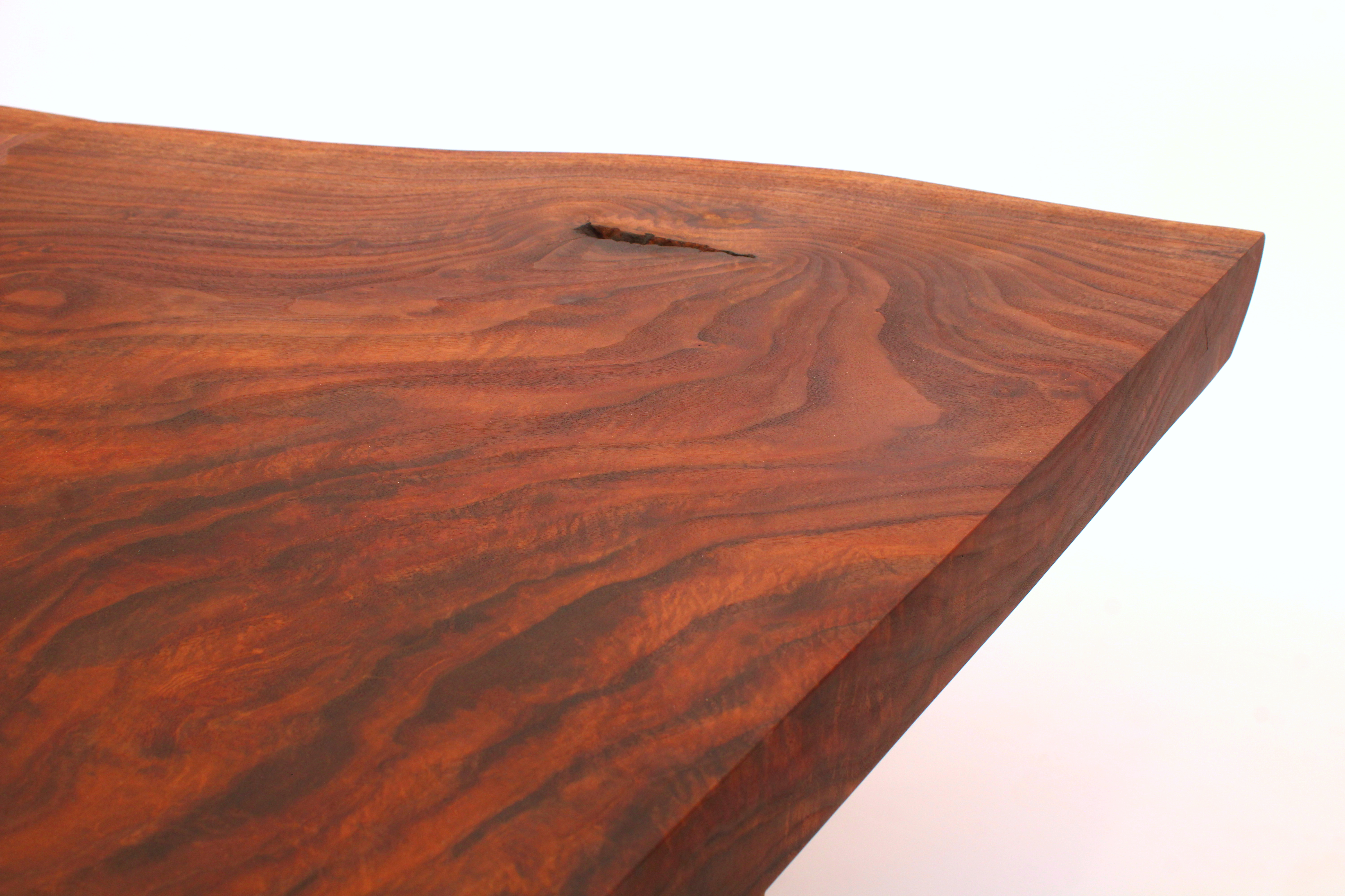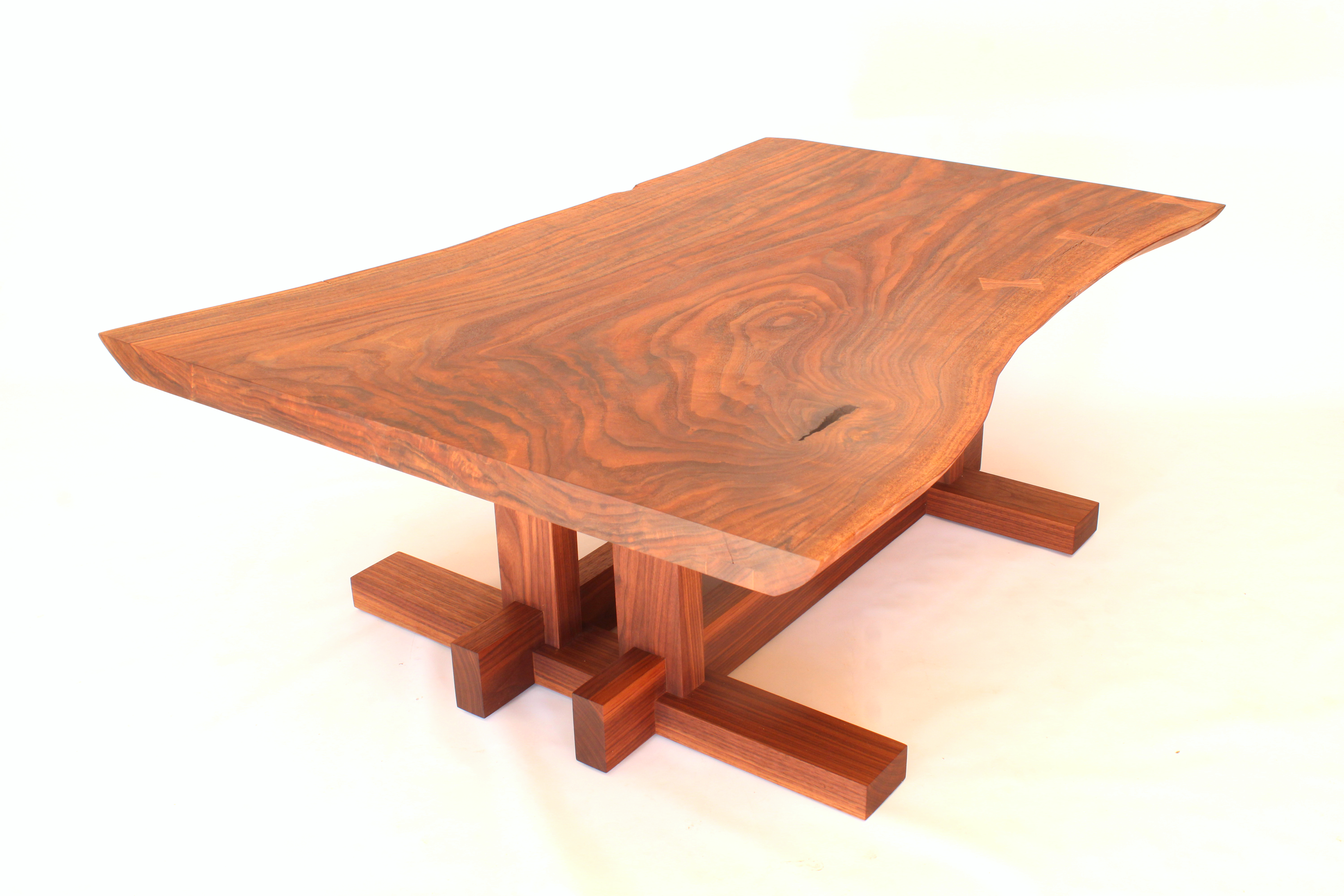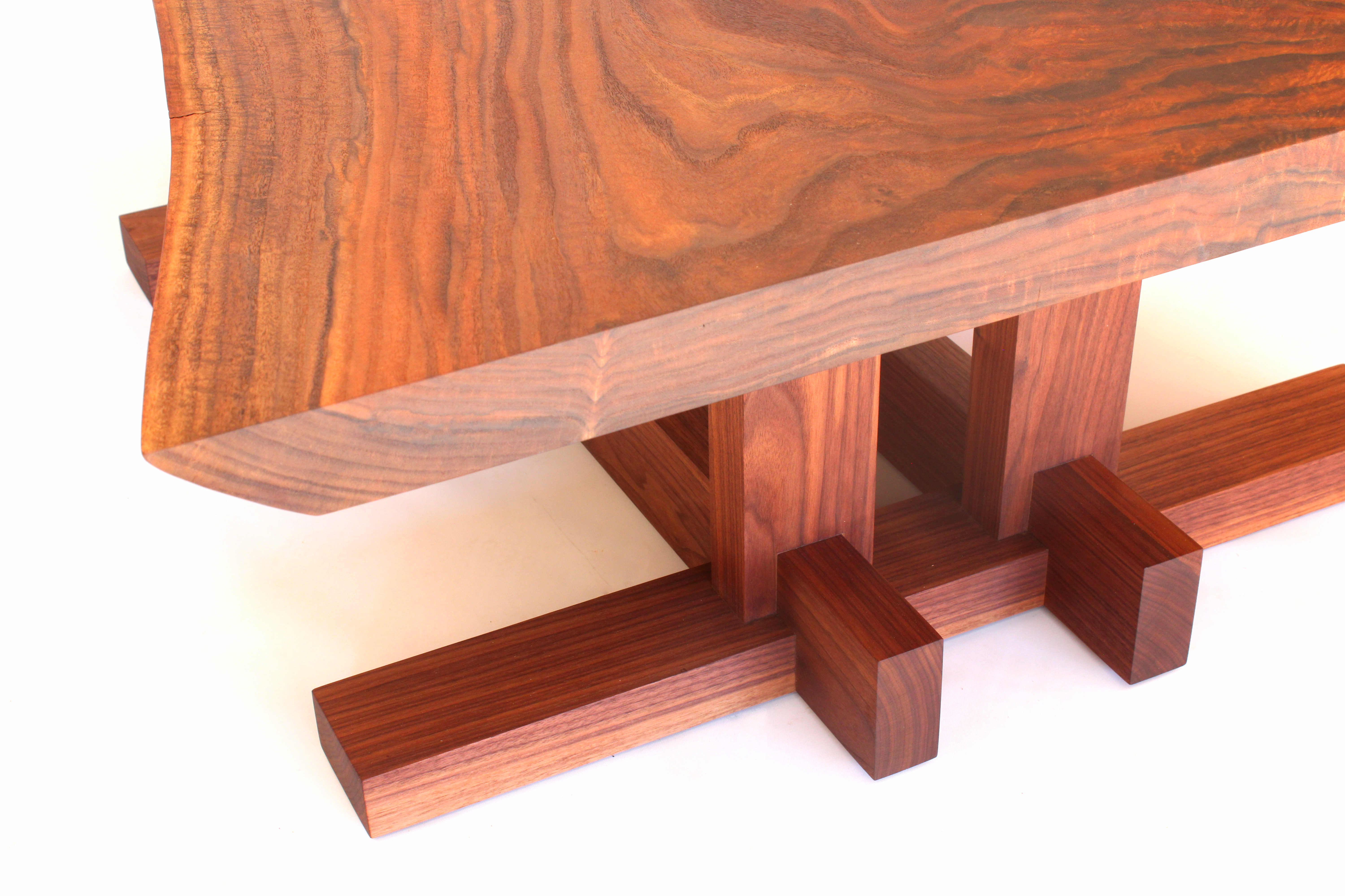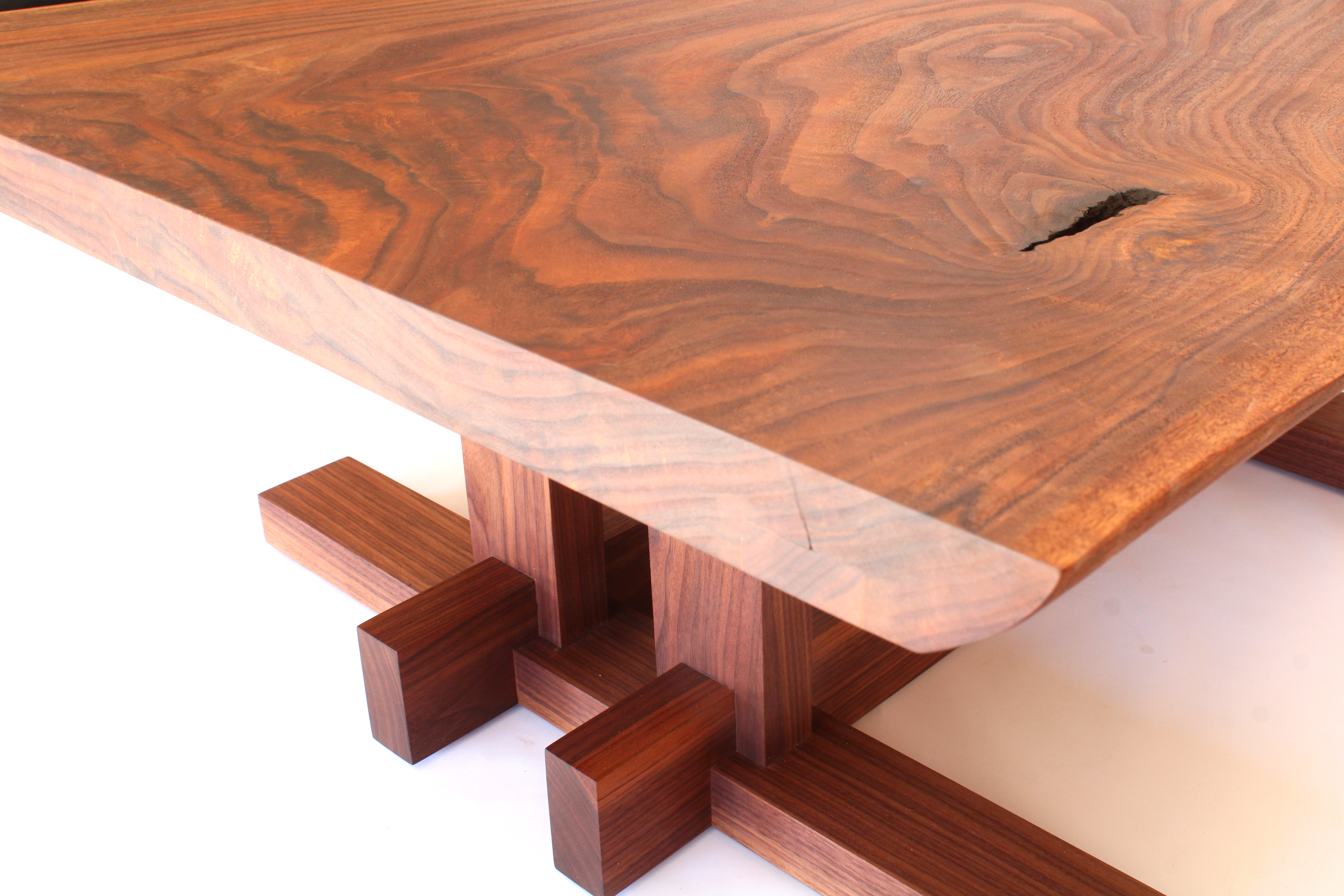 We reexamined the played out “Live Edge” table through a new lens to try and breath life into it. At the core of it, the fascination with the rawness of slab wood feels brutalist and monumental in a way, a tribute. We used this idea to find new life in the trestle style base. The base is super straight forward with an exacting refinement in proportions and layout. The substantially thick pieces all run on a three axis system and all intersect, and continue to pass through each other. It feels architectural, brutalist, refined and most importantly it looks fresh and deviates from the standard trestle style base. While designing the base many hours were spend researching the Art and Architecture building at Yale deigned by Paul Rudolph. It’s influence is undeniable and shows.